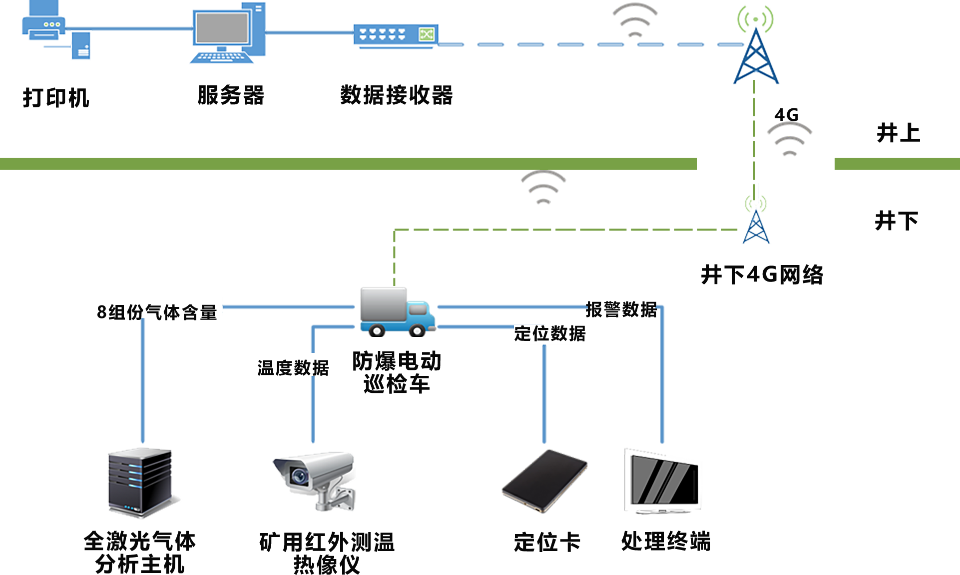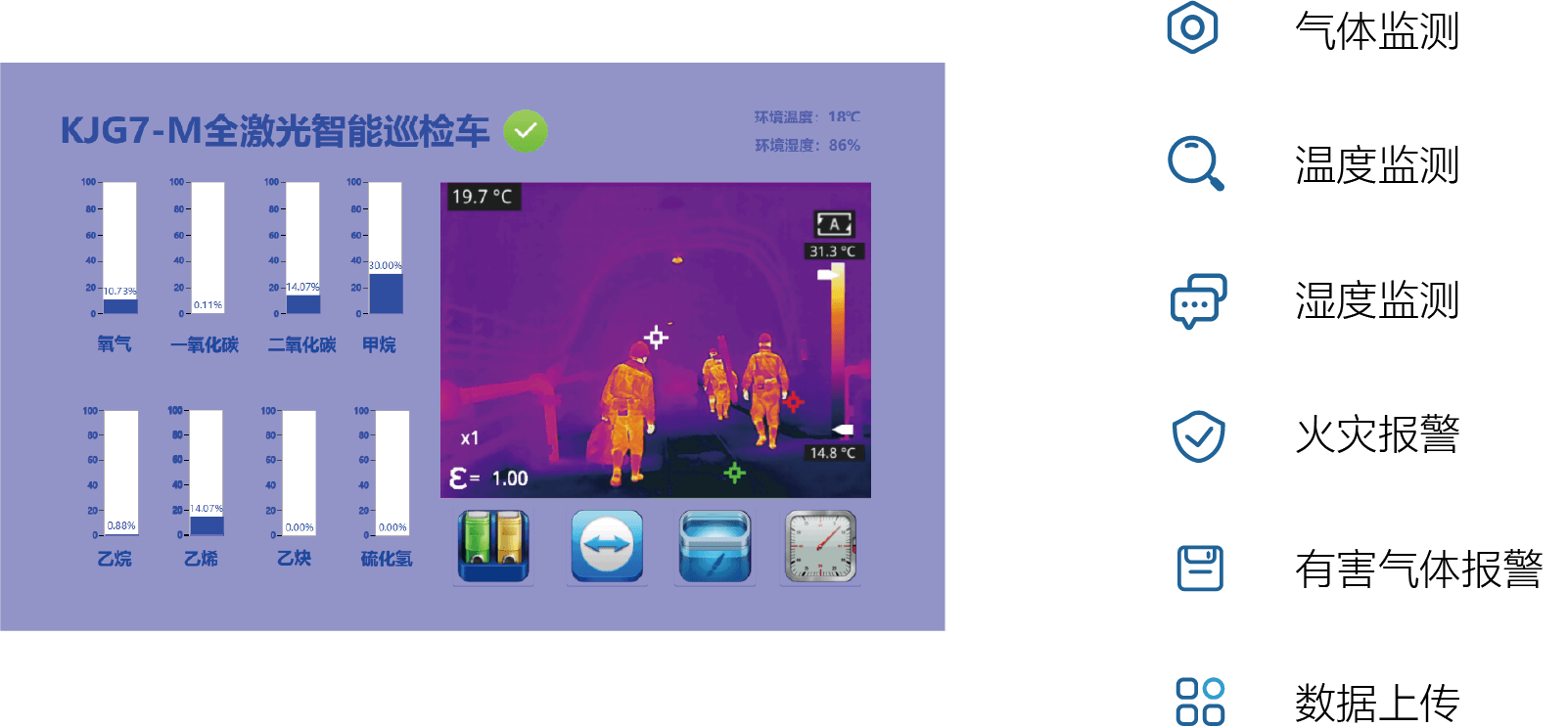 主要應(yīng)用場(chǎng)景:適用于膠輪車能下礦的斜井,降低瓦檢工作強(qiáng)度,提升工作效率,提升數(shù)據(jù)準(zhǔn)確性,提高數(shù)據(jù)時(shí)效性,更有利于保障安全生產(chǎn)。